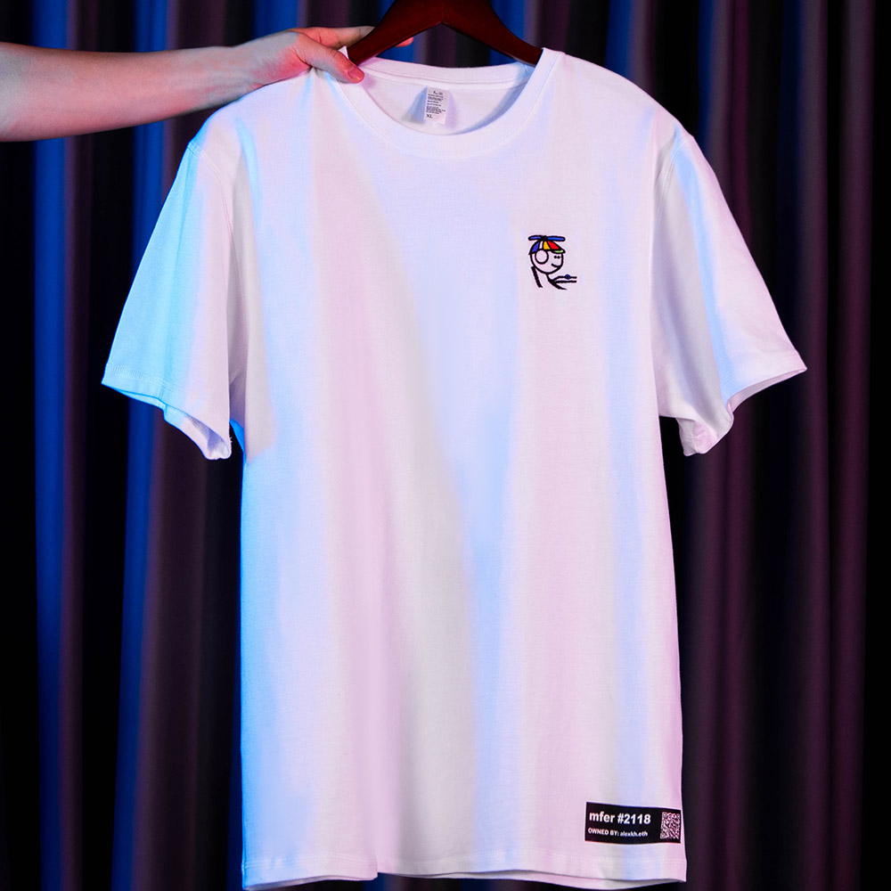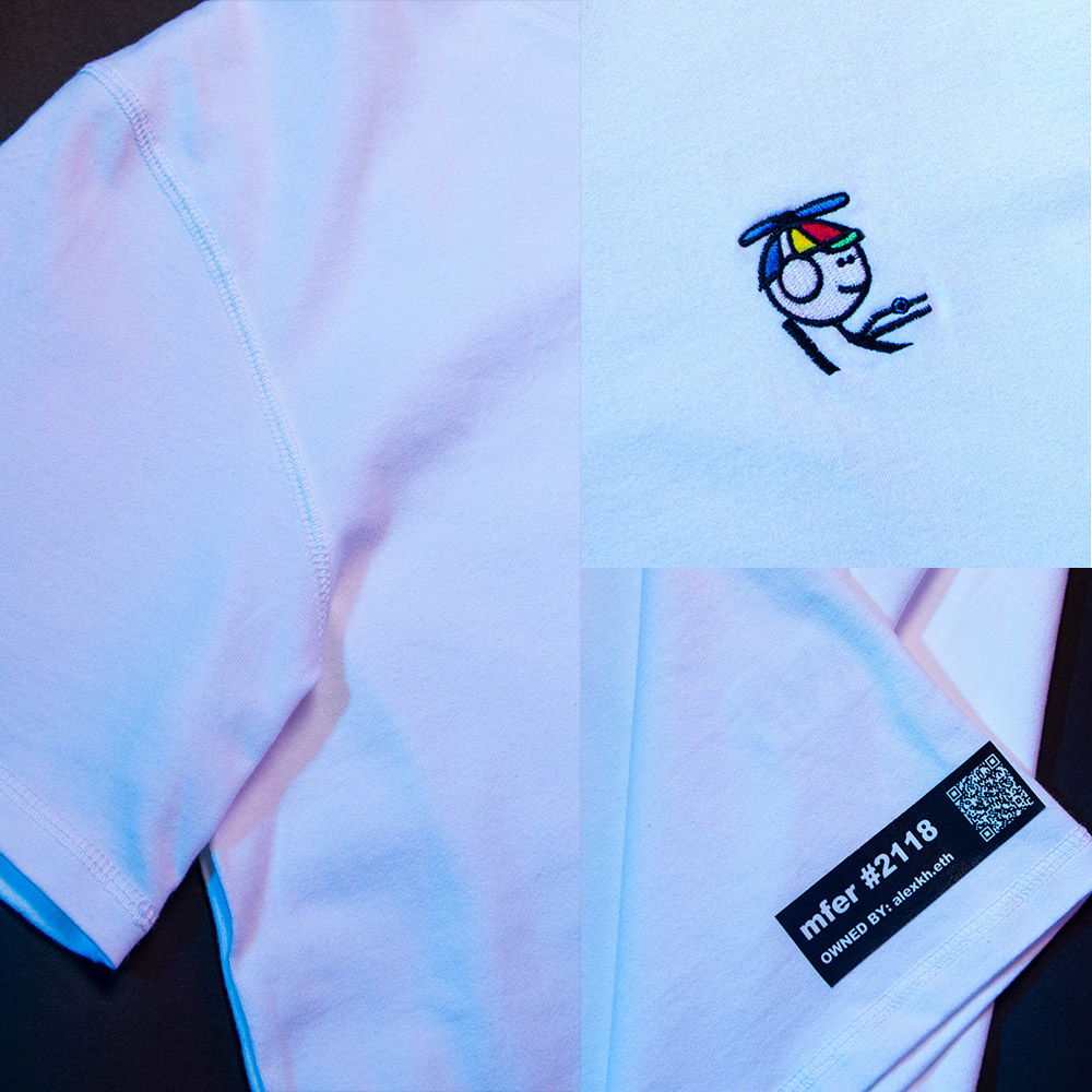 This product is a sweatshirt that can be customized according to NFT. The sweatshirt is made of heavyweight fabric, and the customized pattern is embroidery, which is very delicate. It will also be printed with the NFT name and owner information. When the user buys and wears this sweatshirt, they can have a better connection with this NFT, as if they were walking out of the universe.